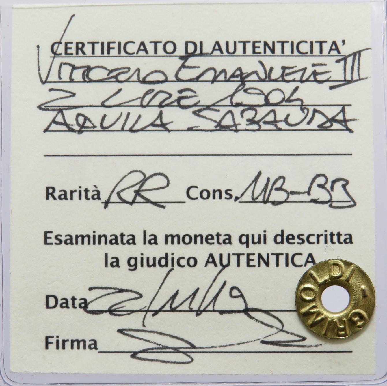 | Note | Perizia Grimoldi |